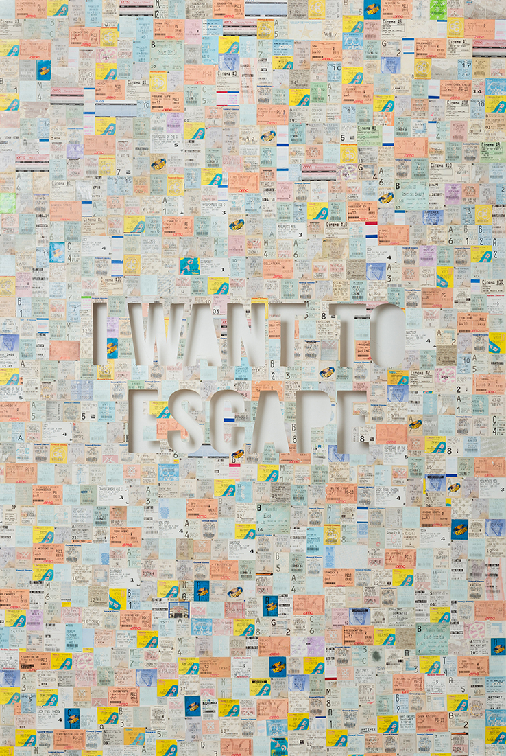 Vintage movie ticket stubs from the artist’s personal collection and sourced, collaged to canvas