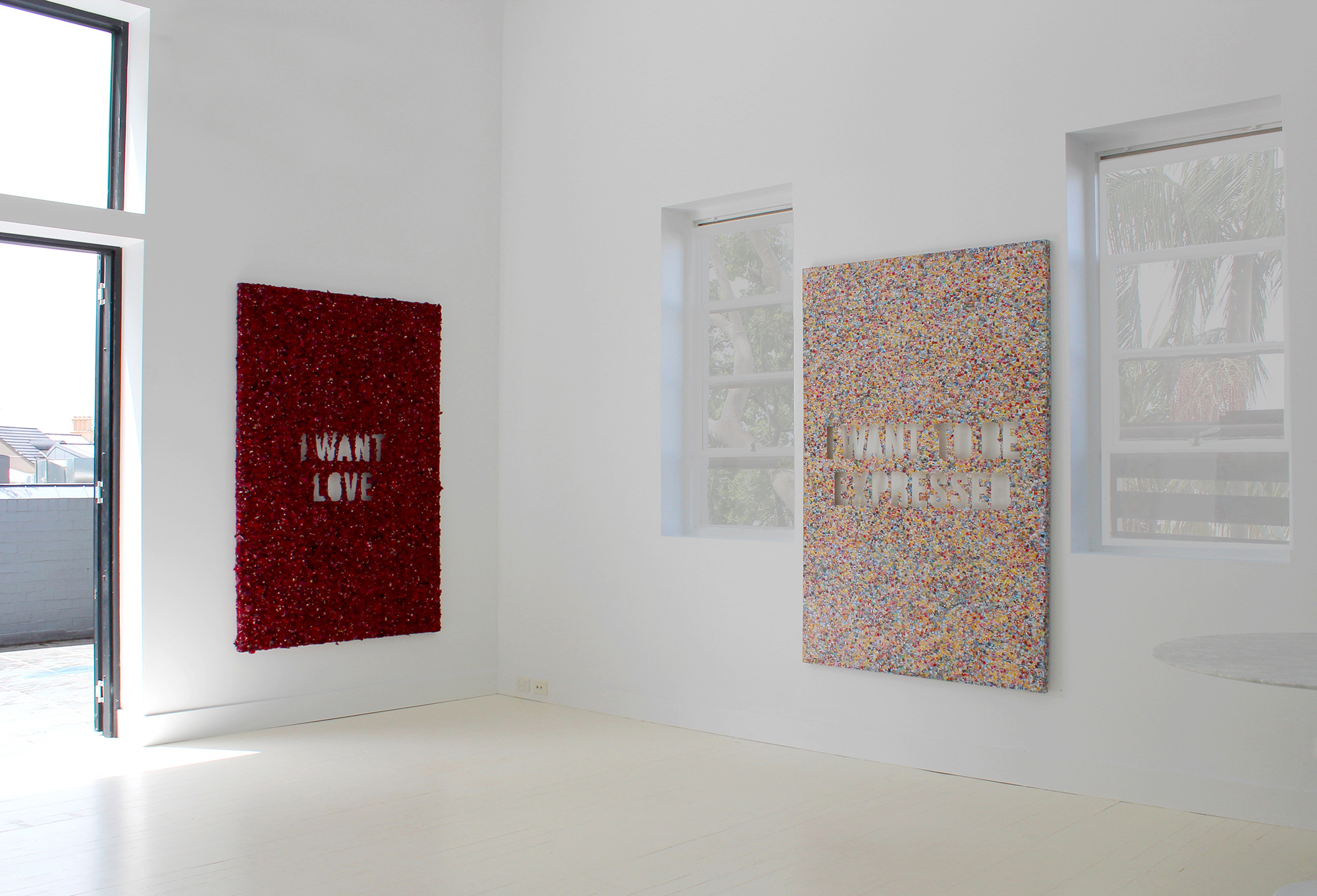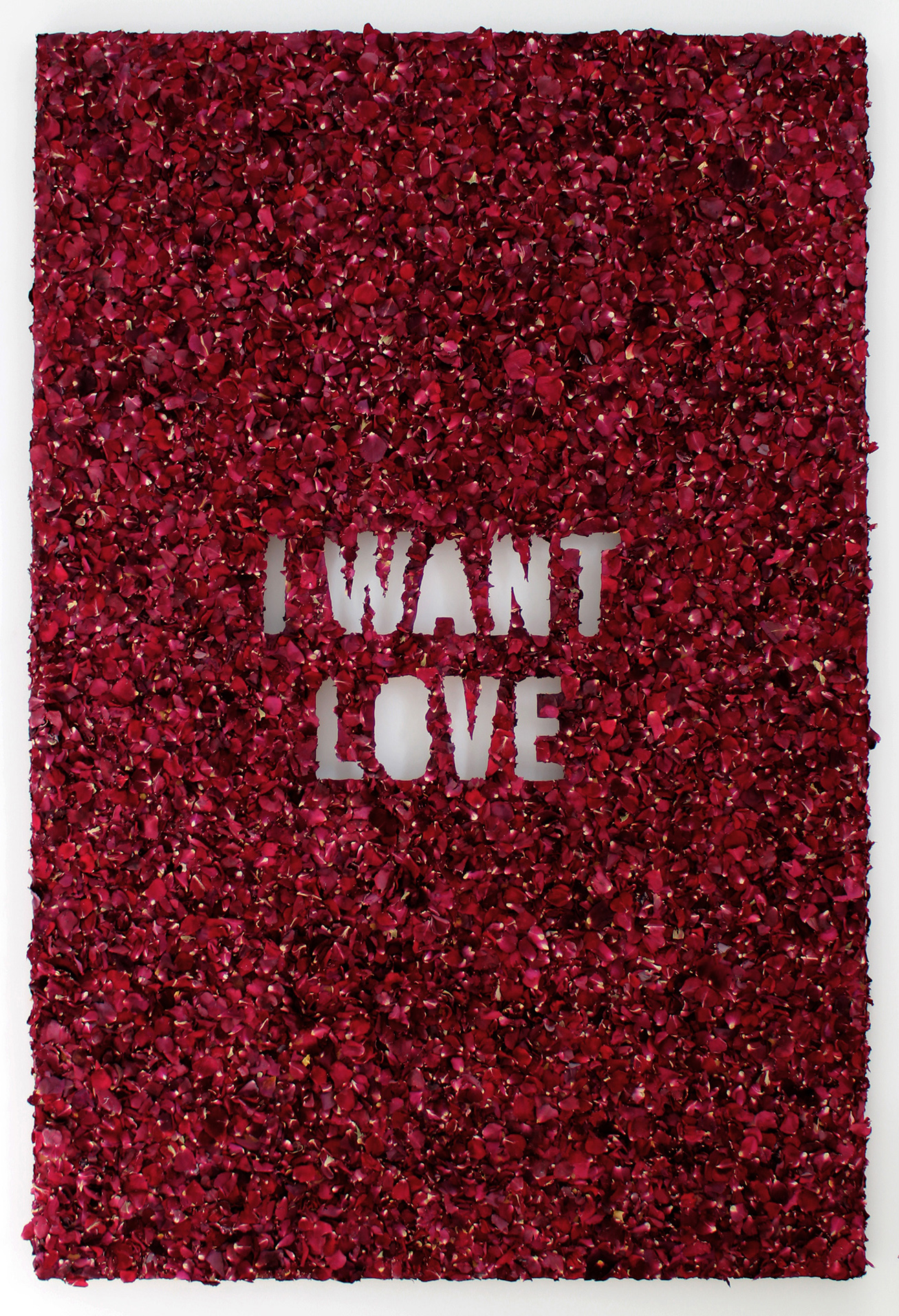 Freeze-dried rose petals sprayed with sealer and collaged to canvas