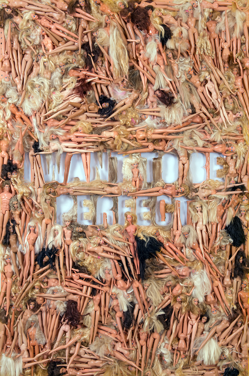 Vintage naked Barbie & Ken Dolls collaged to peg board